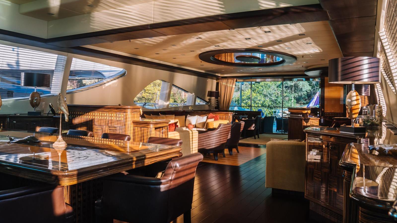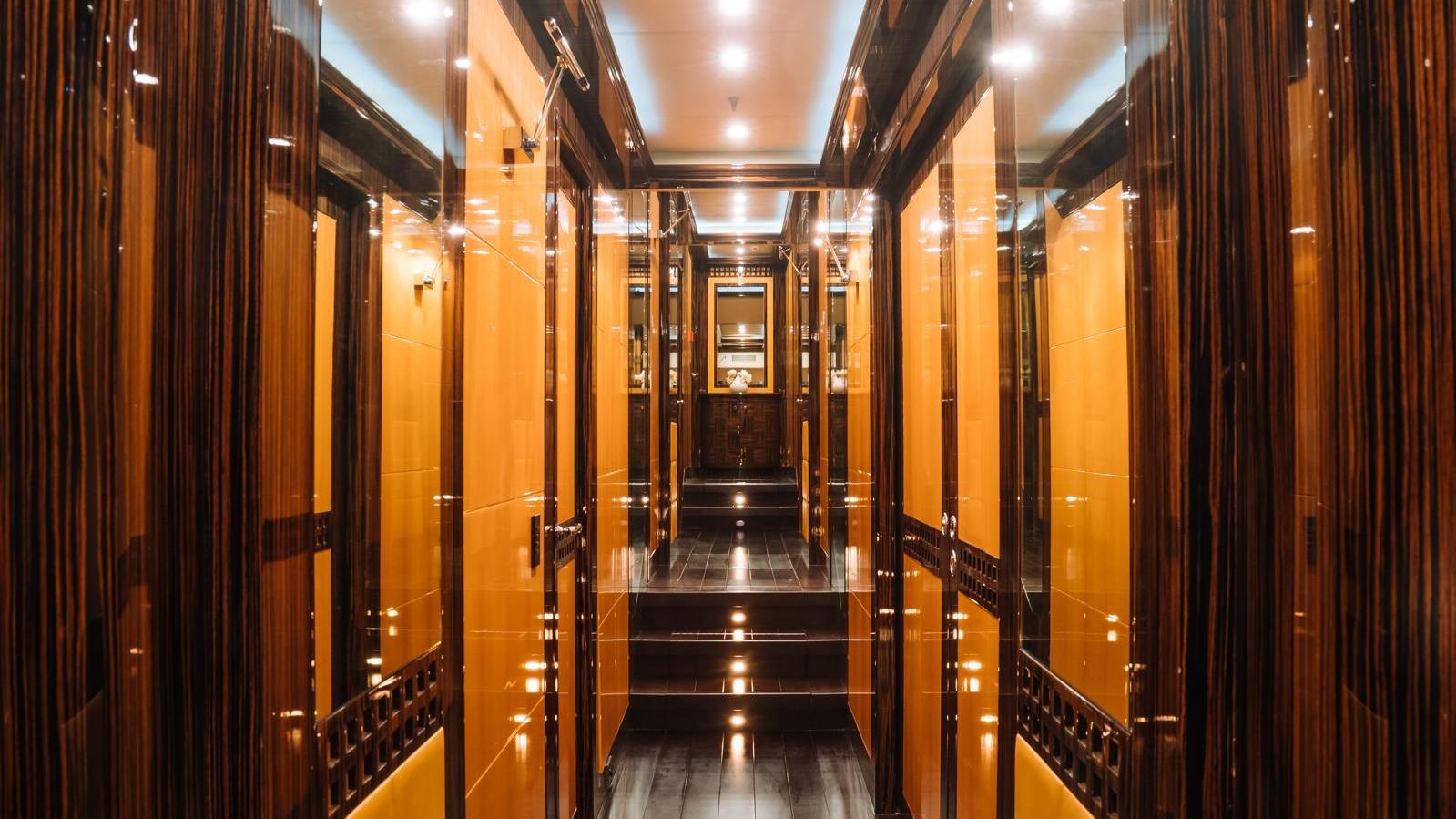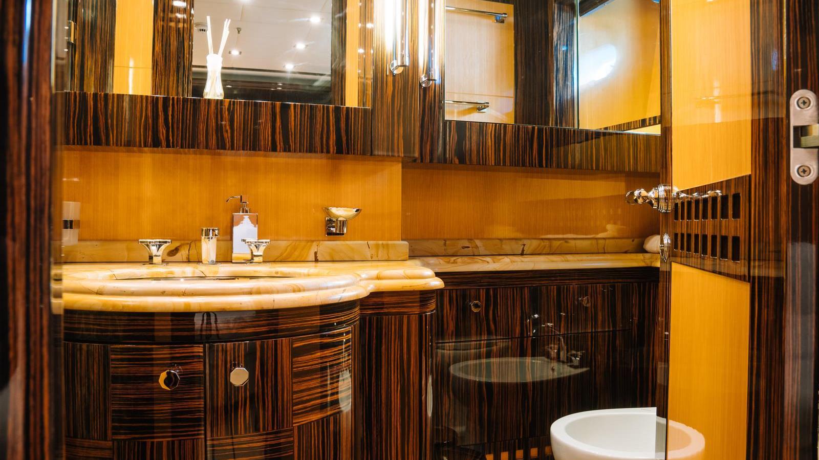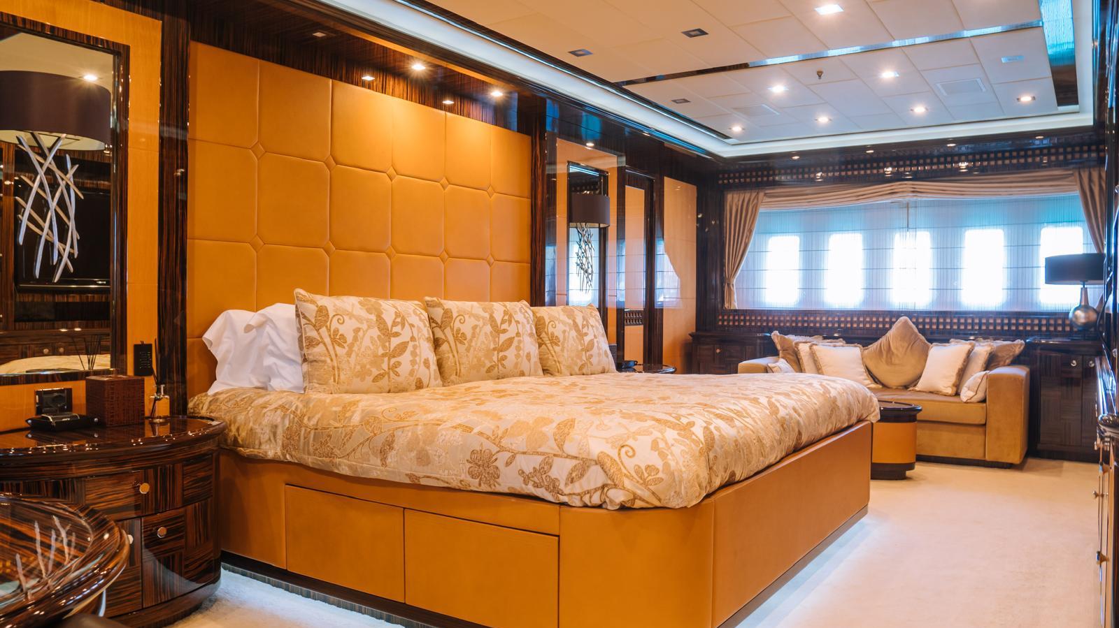 Inside, guests are welcomed into a world of refined elegance with 6 luxurious cabins that comfortably accommodate up to 12 guests. Each cabin is climate-controlled with full air conditioning and supported by 3 x 55 kW generators, ensuring uninterrupted comfort at sea. A fully equipped galley and separate crew quarters provide privacy and seamless service from a professional crew.